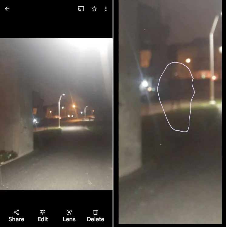 Walking home,and for no reason I stopped took my phone out and took a picture put my phone back in my pocket and continue walking home…when I got home I thought to myself that was weird why did I stop and take a picture of nothing,I looked at the picture and right away I see something and zoom in it asilhouette of a person..I added a better picture