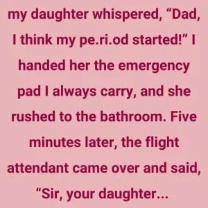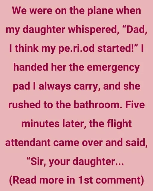 I always keep an emergency pad in my bag, but nothing prepared me for the moment my eleven‑year‑old daughter’s voice trembled beside me on the plane: “Dad, I think my period started.” I pressed the pad into her hand as she bolted for the tiny airplane lavatory, her eyes wide with panic.