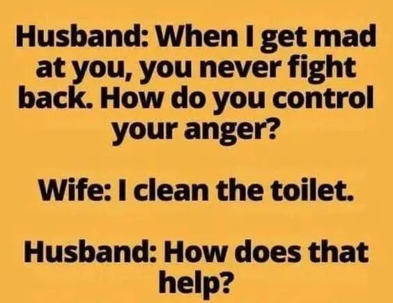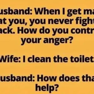 “Wife’s Hilarious Secret to Staying Calm During Fights Will Leave You Speechless!” Posted on March 5, 2025 By Andrew Wright Husband: When I get mad at you, you never fight back. How do you control your anger? Wife: I clean the toilet. Husband: How does that help? Wife: I use your toothbrush. Uncategorized