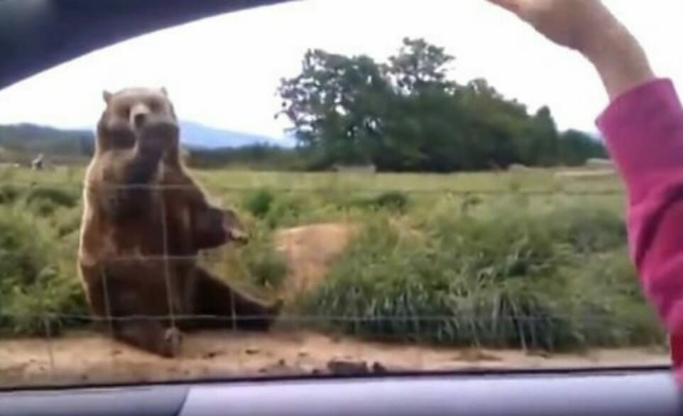 One such visitor sat in her car one day and casually waved at the bear — at which point he returns her greeting, incredibly waving back!